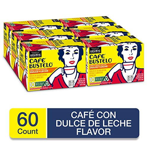 Contains 6 boxes of 10 Café Bustelo Café con Dulce de Leche Flavored Coffee K Cup Pods (60 Count Total)