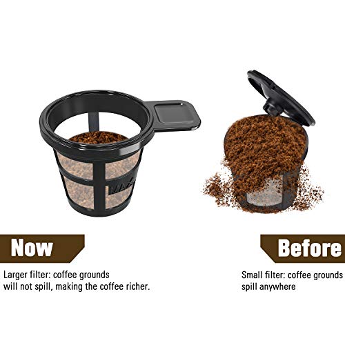 ☕STRONGER COFFEE FLAVOR: Updated basket filter added with a lid that can hold the coffee grounds in place to prevent them from spilling, and the larger size filter is better for the coffee grounds to fully immerse in water. The coffee machine outlet has been also improved, it can maximally prevent the coffee splash.