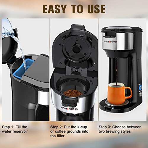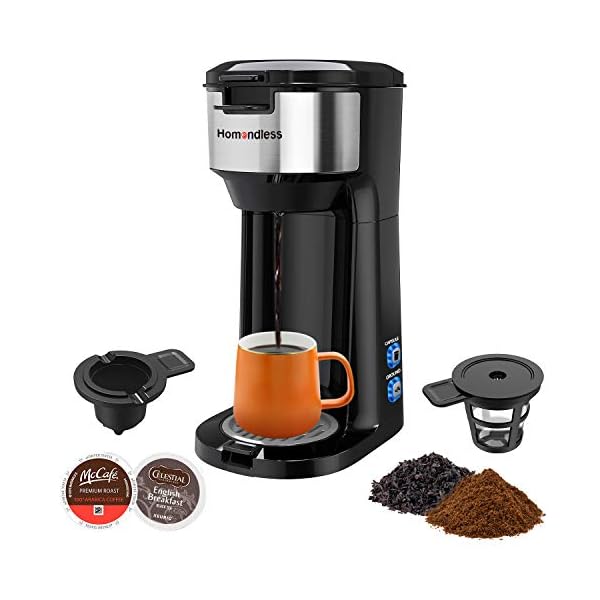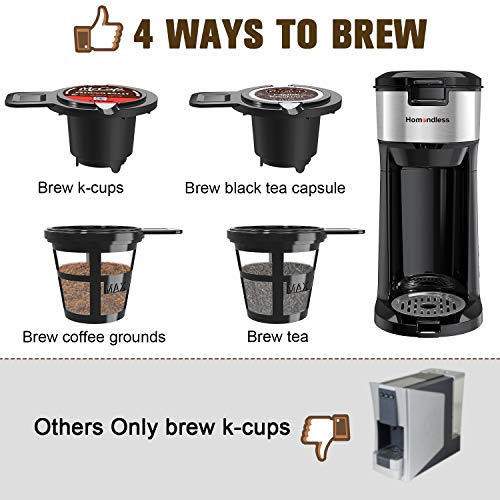 ☕4 WAYS BREWING: Supports to brew k cups capsule, black tea capsule, coffee grounds, and tea leaf. It comes with a reusable coffee grounds filter and standard size k cup holder, which are convenient for you to choose between 4 brewing styles.